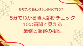 B2B-ECあなたの会社はBtoB-EC向き?5分でわかる導入診断チェック|10の質問で見える業務と顧客の相性 あなたの会社はBtoB-EC向き?5分でわかる導入診断チェック|10の質問で見える業務と顧客の相性 はじめに 周りの企業がEC化を進めているけど、うちにも本当に必要なのか。 営業やFAXで十分対応できているし、システム化はまだ早いのでは。 ... 2025.10.19B2B-EC