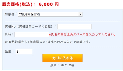 その為、EC-CUBEに有資格者の資格No.と氏名、等級の情報を管理画面からアップロードできる機能を実装し、研修を購入する際に資格No.と氏名を入力して貰いチェックすることとしました。