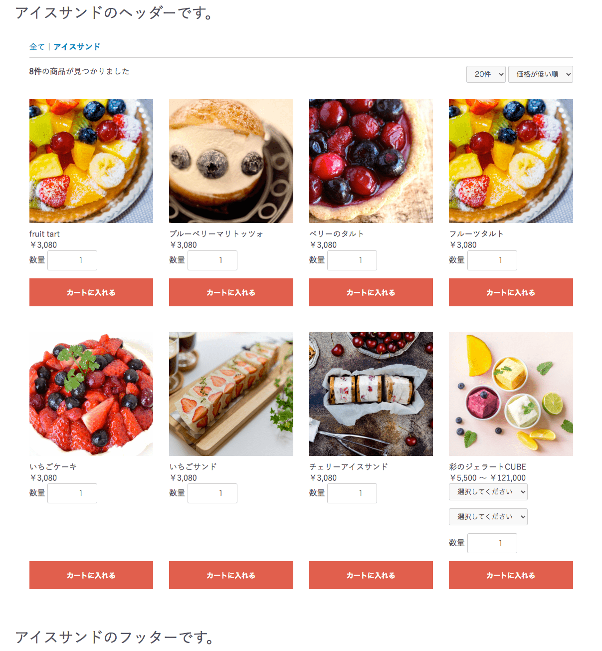 入力したヘッダーコンテンツとフッターコンテンツの内容が、カテゴリーページのヘッダとフッタに表示されます。
